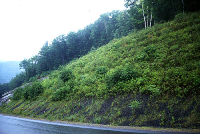 used most effectively in combination with conventional engineering to stabilize a cut slope.